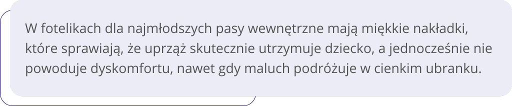 W opiniach użytkownicy wspominają również o komforcie dziecka. Rodzice podkreślają, że pociechy dobrze czują się w trakcie podróży dzięki możliwości dopasowania pasów, które skutecznie chronią, a przy tym nie obcierają.